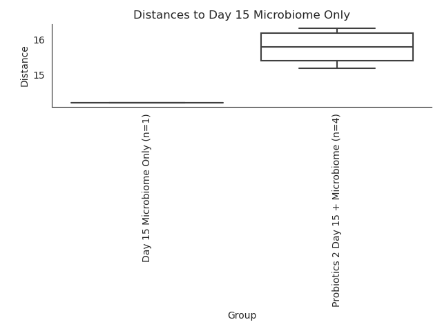 | Day 15 Microbiome Only | Probiotics 2 Day 15 + Microbiome | 4 | 999 | 1.229333 | 0.31 | 0.31 |