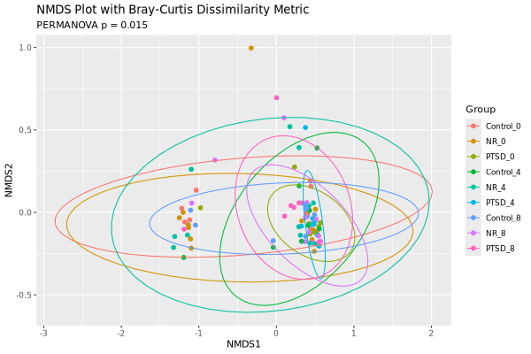NMDS separately. Below are beta diveristy results for all groups together, at the Species level: