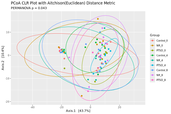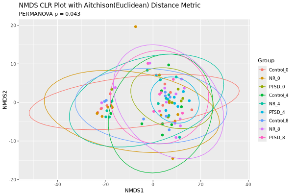 The above PCoA and NMDS plots are based on count data. The count data can also be transformed into centered log ratio (CLR)