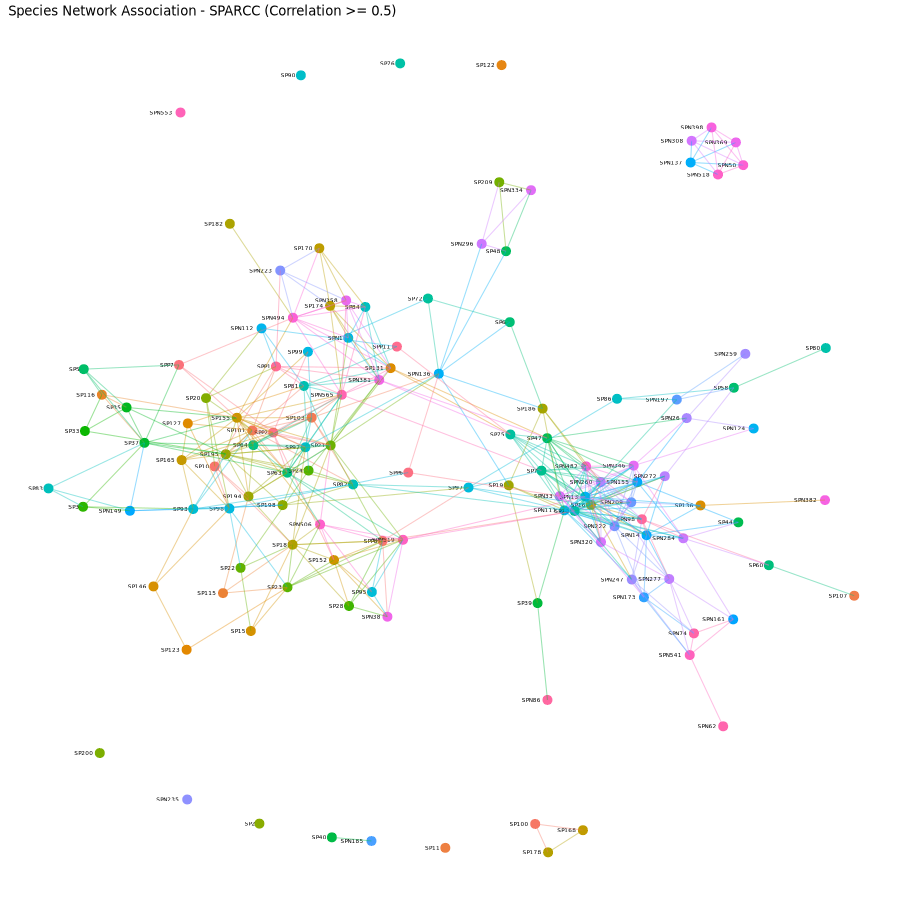 inference framework that assumes the underlying ecological association network is sparse. SPIEC-EASI provides