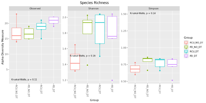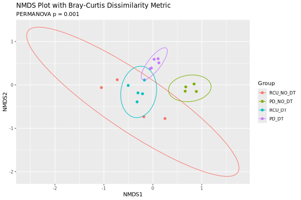 NMDS separately. Below are beta diveristy results for all groups together: