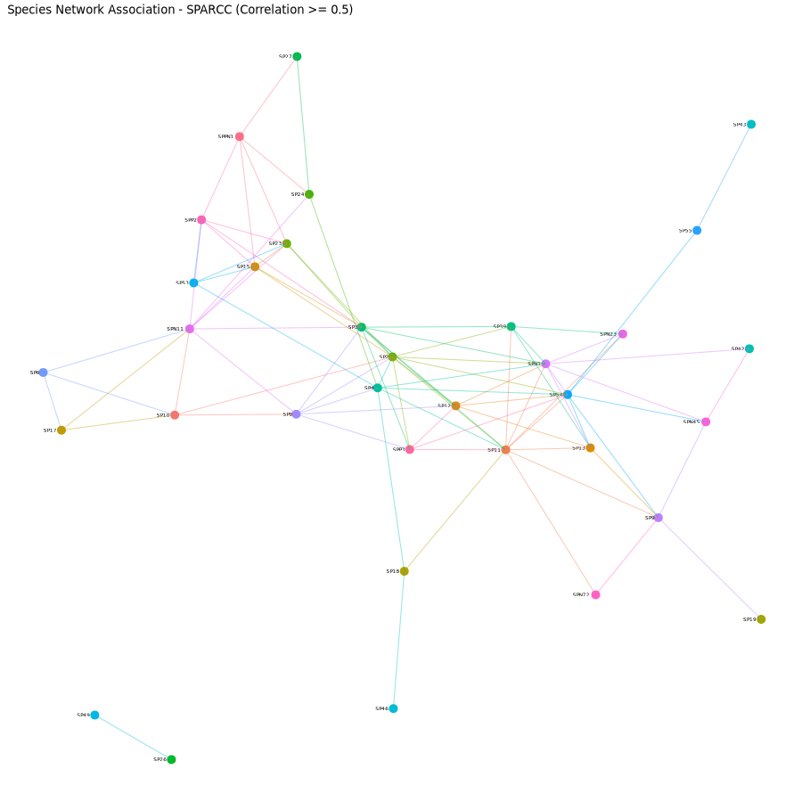 inference framework that assumes the underlying ecological association network is sparse. SPIEC-EASI provides