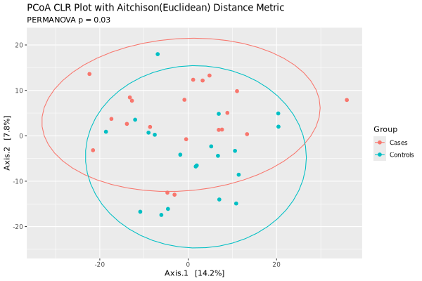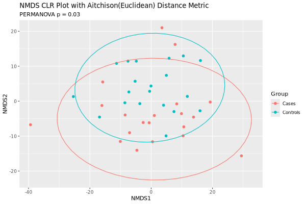 The above PCoA and NMDS plots are based on count data. The count data can also be transformed into centered log ratio (CLR)
