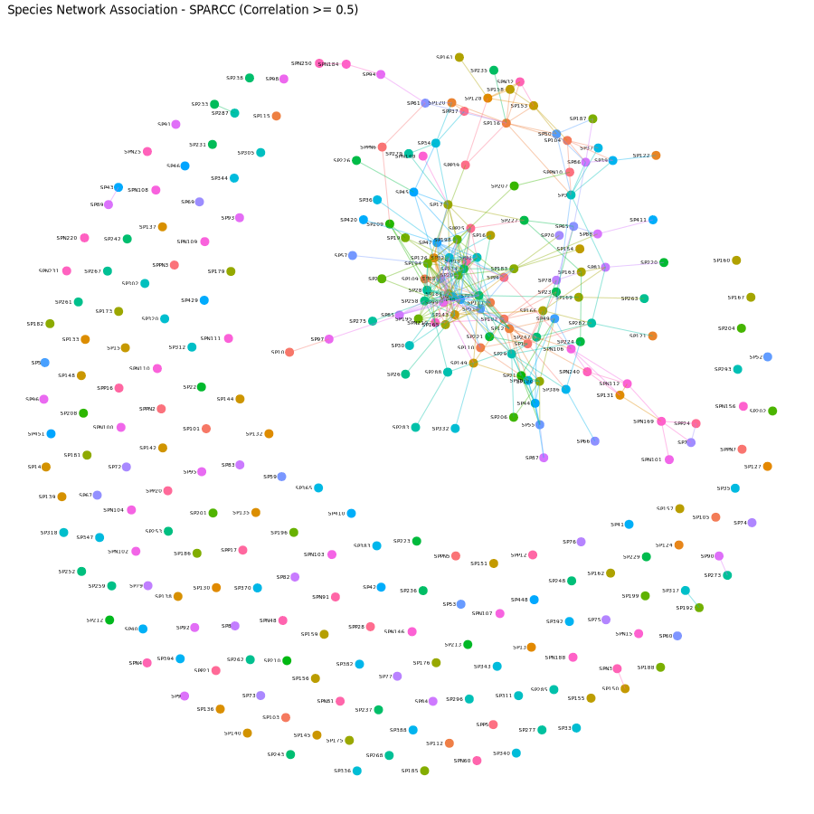 under-powered. We provide the network association result with SparCC (Sparse Correlations for Compositional data)(Friedman & Alm 2012), which
