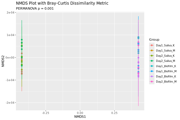 NMDS separately. Below are beta diveristy results for all groups together, at the Species level: