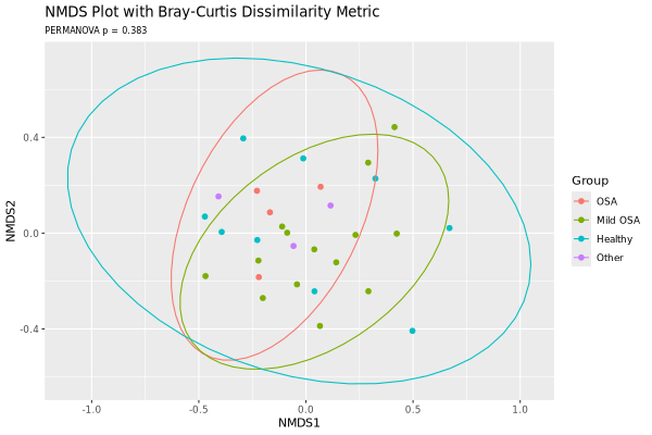 Below are the NMDS and PCoA plots of the Aitchison distances of the samples at the Species level: