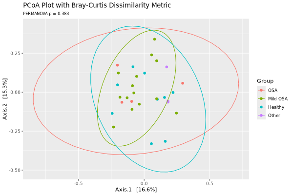 Beta diversity compares the similarity (or dissimilarity) of microbial profiles between different groups of samples. There are many different similarity/dissimilarity metrics [8]. In general, they can be quantitative (using sequence abundance, e.g., Bray-Curtis or weighted UniFrac) or binary (considering only presence-absence of sequences, e.g., binary Jaccard or unweighted UniFrac). They can be even based on phylogeny (e.g., UniFrac metrics) or not (non-UniFrac metrics, such as Bray-Curtis, etc.).