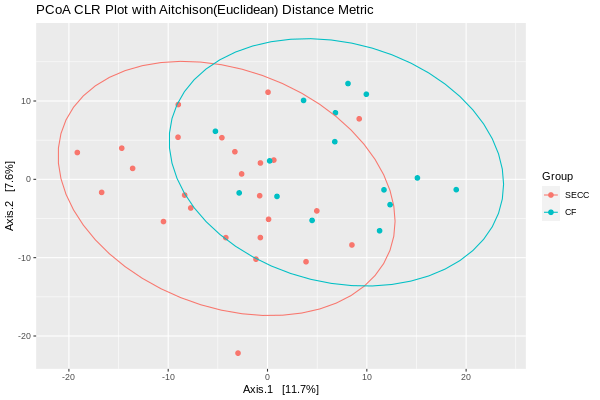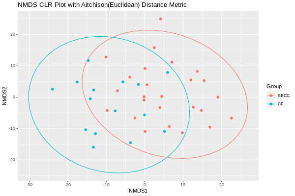 The above PCoA and NMDS plots are based on count data. The count data can also be transformed into centered log ratio (CLR)